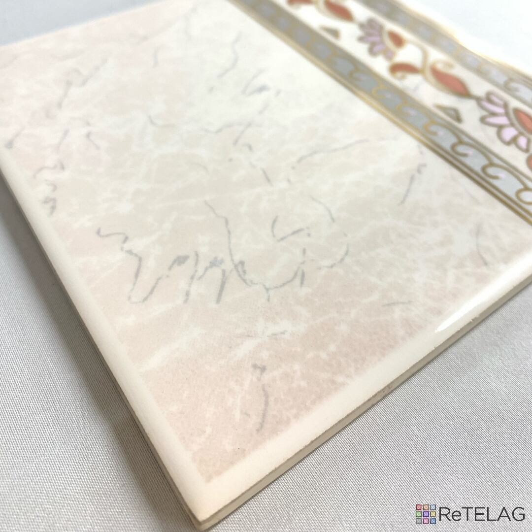 白い大理石のようなデザインと、曲線で描かれたクラシックなフラワーデザインが目を引くレトロタイル。