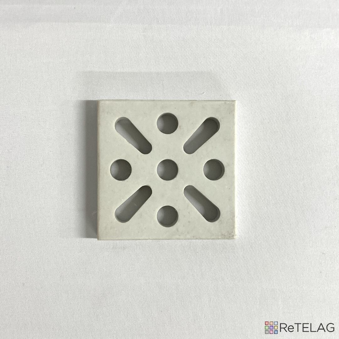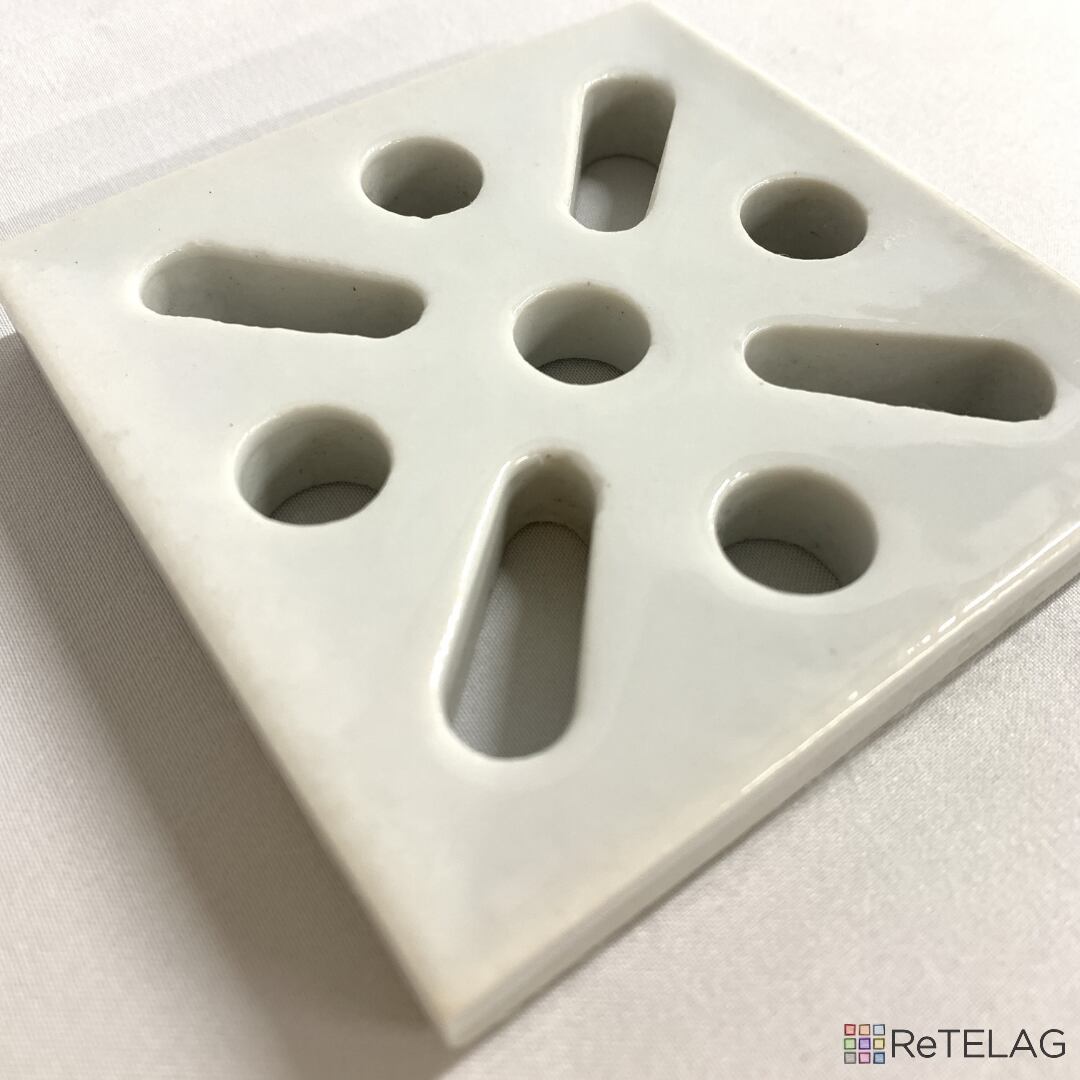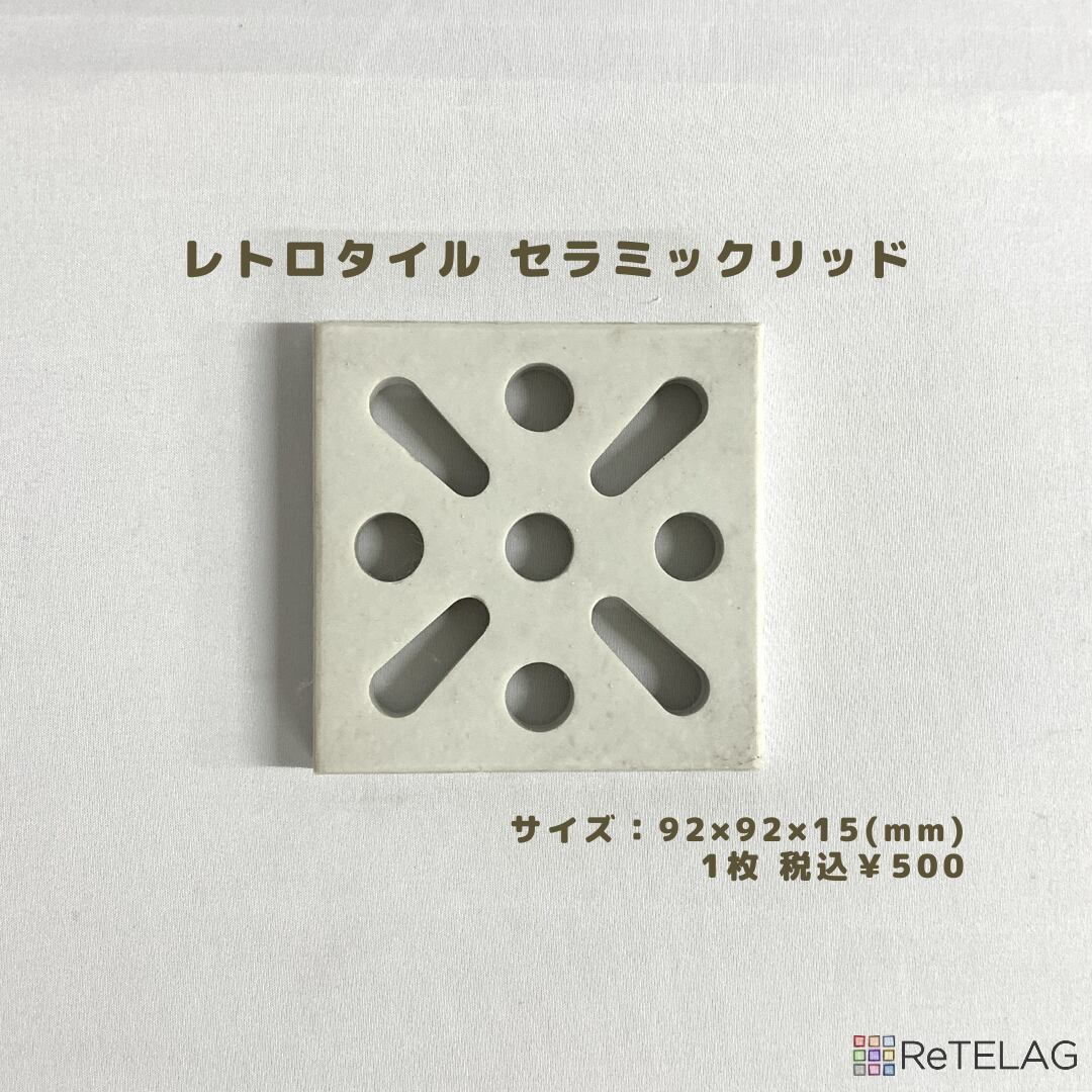 陶器製で表面だけに釉薬が付いているこのタイル、実はその昔バスルームやキッチンの排水口の目皿として作られたレトロタイル。