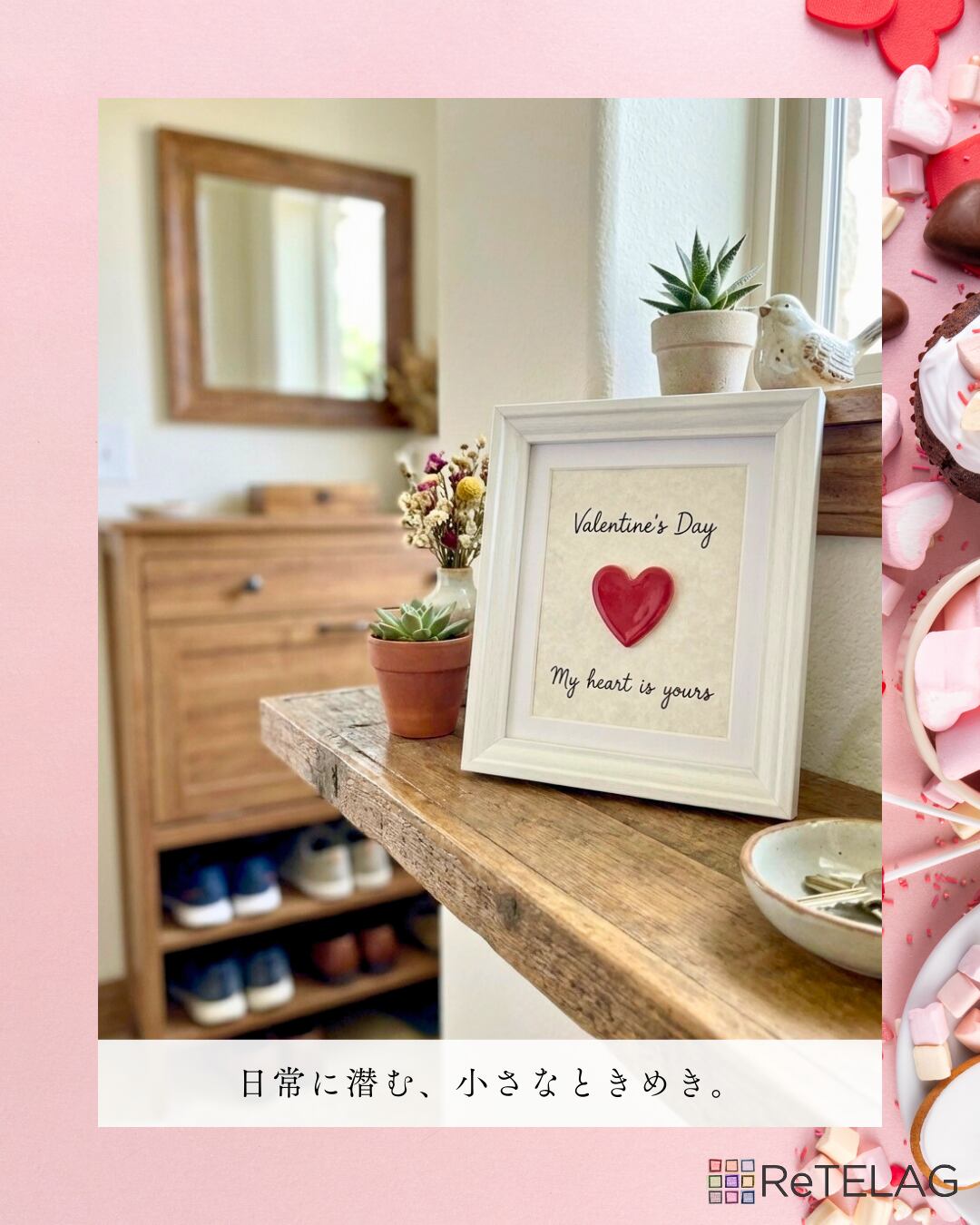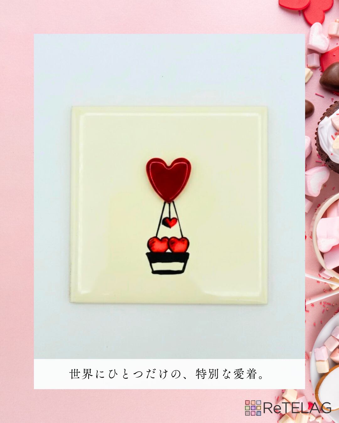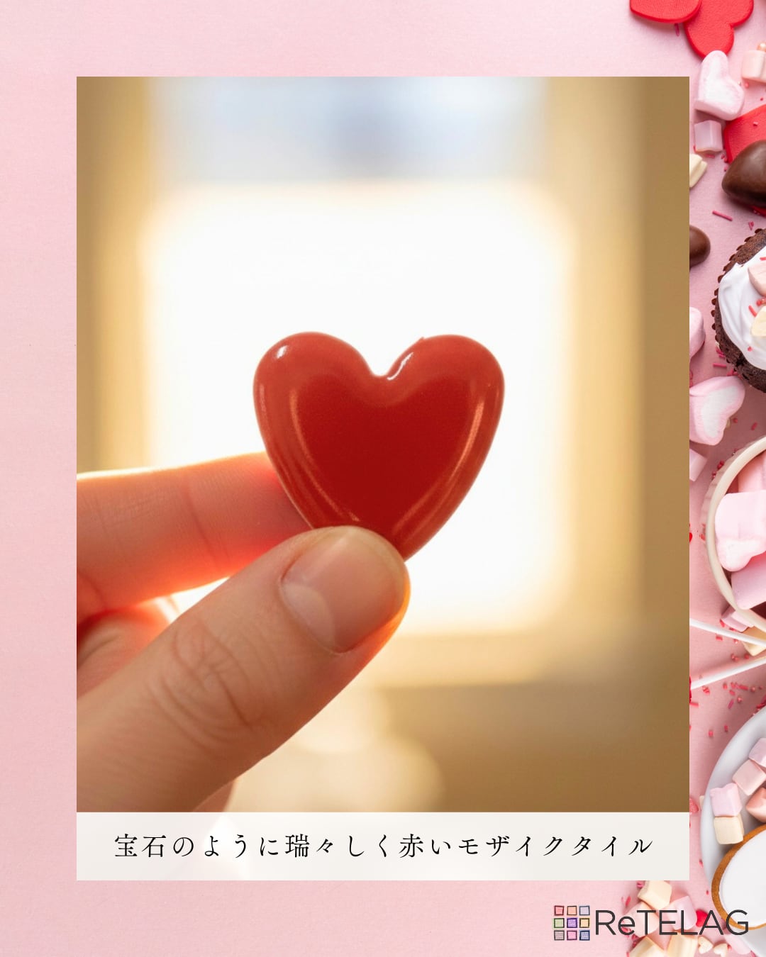 愛らしいローズレッドのハート型モザイクタイル