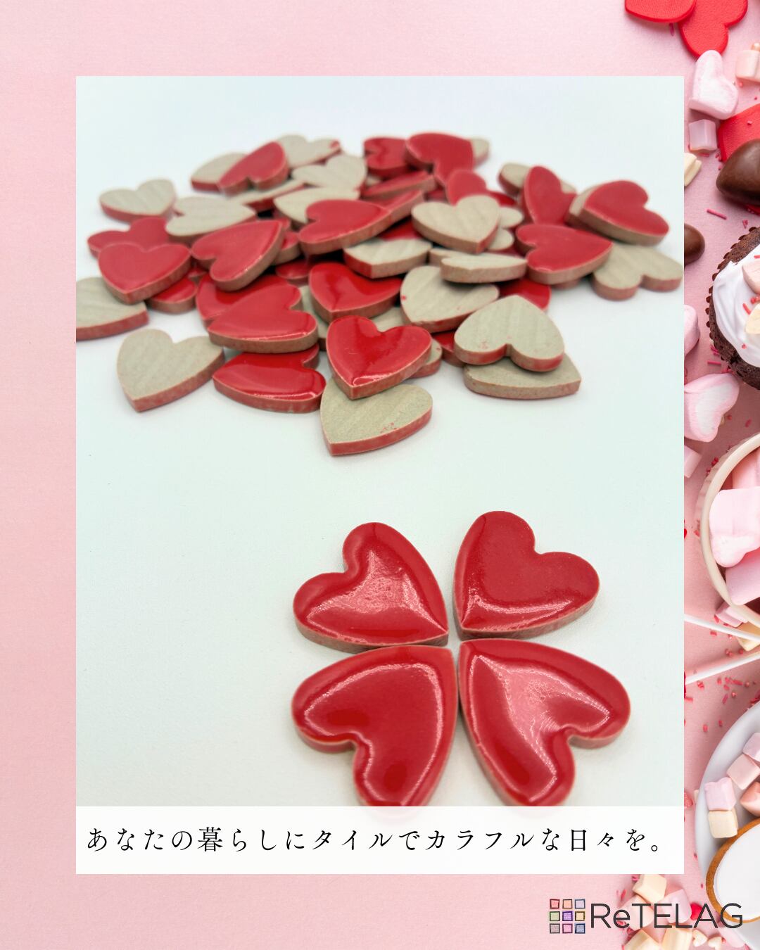 商品名:モザイクタイル レッドハーツ200g